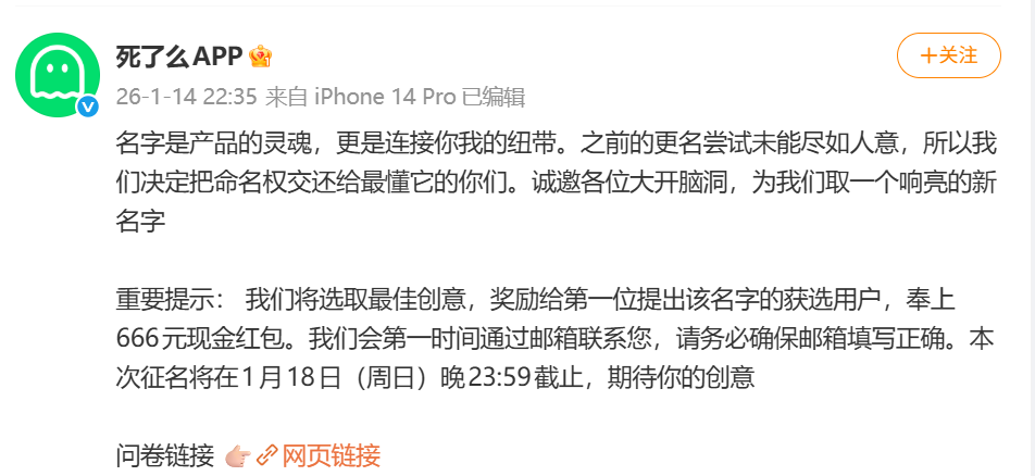 @死了么APP 发文征名。