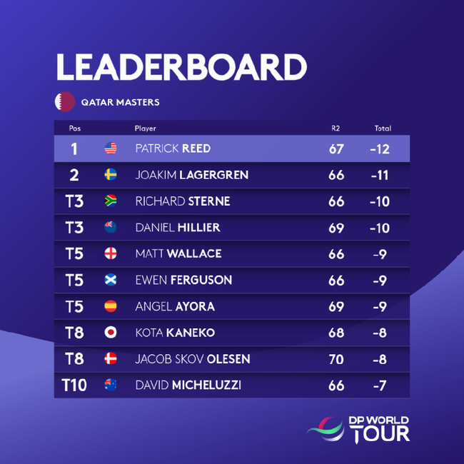 北京时间2月7日,帕特里克·瑞德收官抓下小鸟,在卡塔尔大师赛第二轮结束之后取得领先。