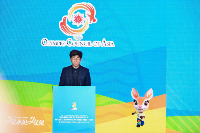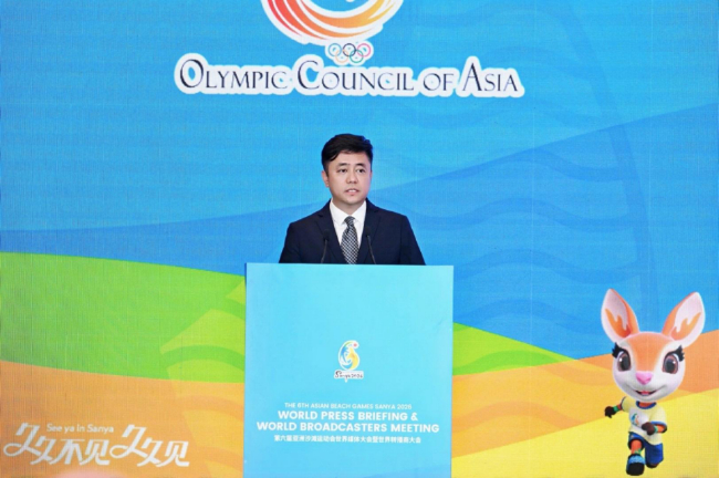 亚奥理事会媒体与广播电视部主任周健代表OCA媒体委员会主席Faris的致辞中表示,亚洲沙滩运动会是第二次落地中国,媒体与转播商肩负着直播赛事实况、传播赛事动态、搭建观众情感联结的重要使命。此次大会为大家搭建了了解三亚亚沙会服务设施与筹备进展的重要平台,期待各方携手向世界展现赛事的辉煌成果。