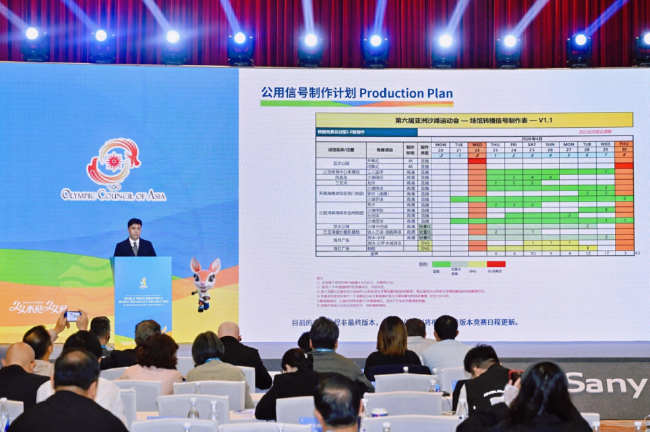 会上,亚沙会组委会和主播机构就赛时媒体运行、媒体服务、竞赛日程、场馆建设、抵离服务、转播政策、转播计划等与会代表关注的各项工作进展情况进行陈述通报和疑问解答。