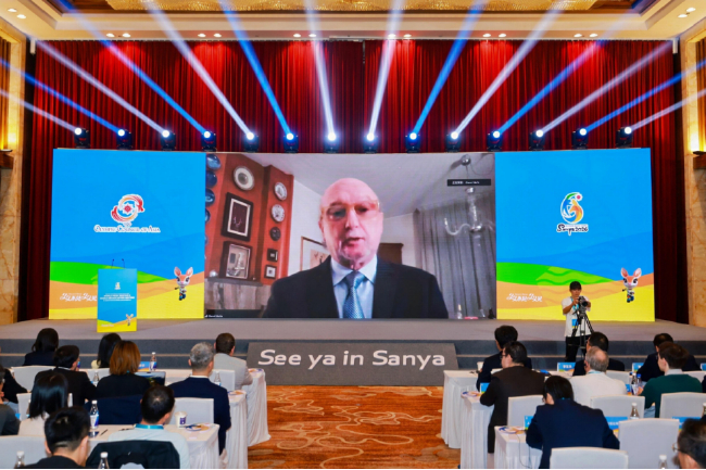 国际体育记者协会主席吉亚尼·梅罗通过视频致辞时表示,本次大会意义重大,中国在举办大型综合体育赛事方面拥有丰富经验,而赛事转播是连接各国及地区的重要桥梁。三亚气候温暖,他热切期待4月亲临三亚见证盛会。
