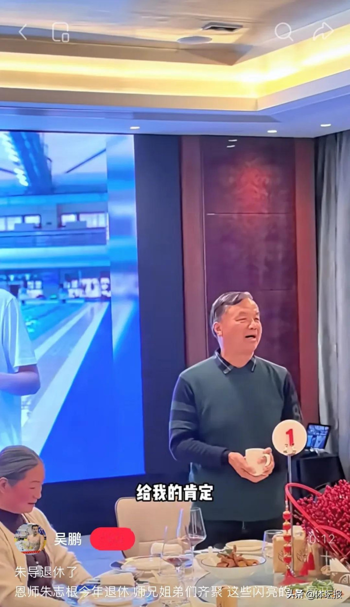 1月27日,中国游泳名将吴鹏在个人社交平台晒出了恩师、浙江游泳队功勋教练朱志根退休聚会的视频。
